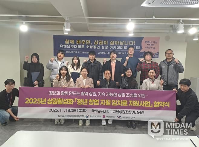 미담타임스 김교환 기자 | 유엔남구대학로자율상권은 지난 11월 18일 유엔남구대학로 자율상권 거점 공간에서 2025년 상권 활성화 '청년 창업지원 임차료 지원사업' 협약식을 개최했다고 밝혔다.