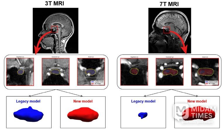 해당 기술은 기존 모델 대비 정밀한 구조 분석이 가능하며, 호르몬 질환 진단의 정확도 향상과 뇌하수체 구조 변화 추적, 내분비질환 치료 계획 수립에 실질적 기여할 것으로 기대된다.