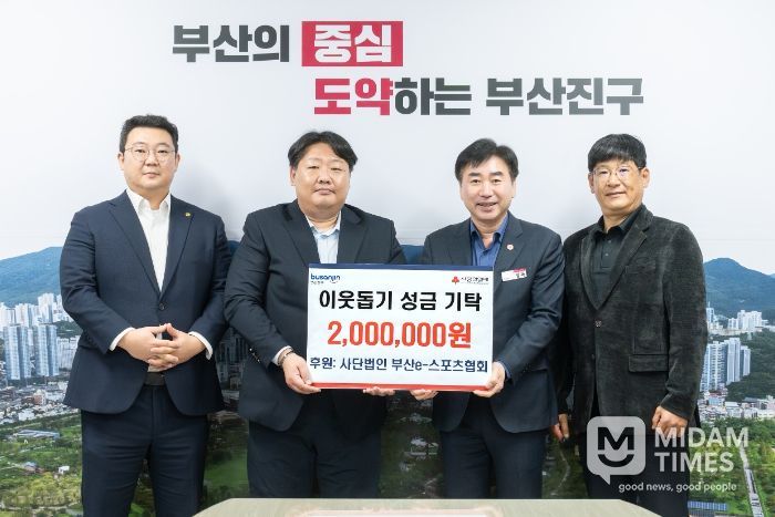 미담타임스 김교환 기자 | 부산 부산진구는 11월 18일, (사)부산이스포츠협회(회장 지창우)에서 부산진구청을 방문하여 이웃돕기 성금 200만 원을 기탁했다고 밝혔다.