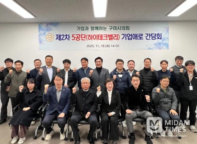미담타임스 김준완 기자 | 구미시의회는 지난 11월 18일, 5공단 내 입주 기업인 (주)티에스티에서 “제2차 5공단(하이테크밸리) 기업 애로 간담회”를 개최하고, 기업 경영 활동을 저해하는 현안 해결과 향후 지원 방안을 논의했다.