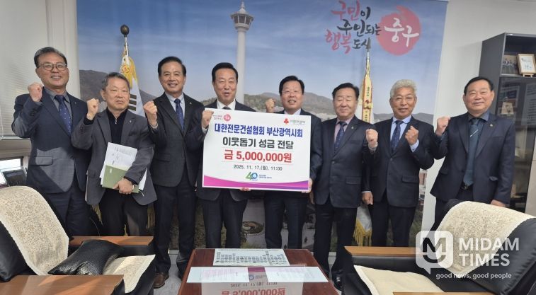미담타임스 김교환 기자 | 지난17일 대한전문건설협회 부산광역시회(회장 김형겸)는 부산 중구청을 방문해 동절기 대비 관내 저소득층 및 취약계층 지원을 위해 이웃돕기성금 500만원을 전달했다.