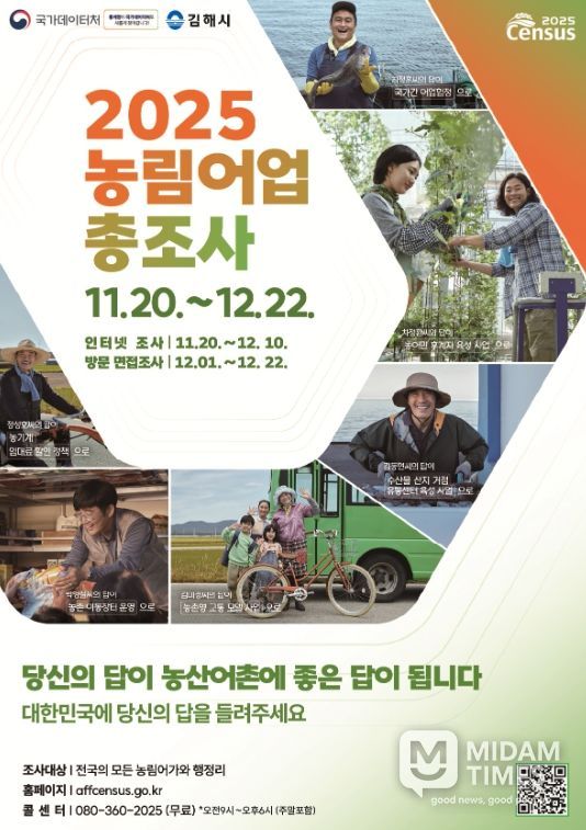 미담타임스 김교환 기자 | 김해시는 20일부터 12월 22일까지 ‘2025 농림어업총조사’를 실시한다.