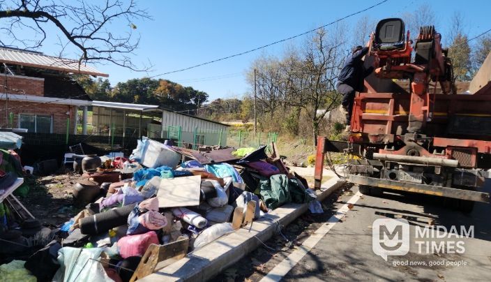 이에 집안 곳곳의 물품을 선별해 1톤 트럭 2대를 동원해 폐기물을 운반했고, 고철 집게차 5톤 트럭 1대와 1톤 트럭 2대로 총 9톤에 달하는 폐품과 쓰레기를 수거했다.