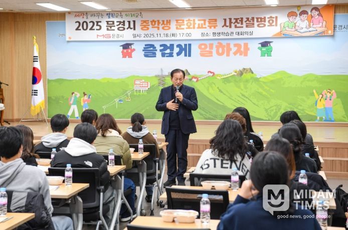 미담타임스 김준완 기자 | 문경시는 지난 18일 문경시 중학생 문화교류 프로그램에 참가할 학생과 학부모 30여 명을 대상으로 평생학습관 3층 대회의실에서 사전설명회와 안전교육을 가졌다.