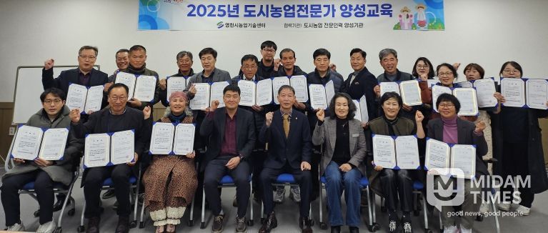 미담타임스 김준완 기자 | 영천시는 지난 18일 농기계임대사업소 서부본소 교육생 22명이 참석한 가운데 ‘2025년 도시농업관리사 자격취득과정 수료식’을 가졌다.