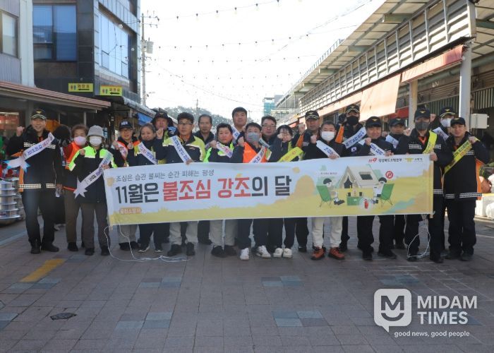 미담타임스 김준완 기자 | 울진소방서는 19일 오전 울진 바지게시장 일대에서 ‘불조심 강조의 달’을 맞아 합동 소방안전문화 캠페인과 소방차 퍼레이드를 성황리에 개최했다. 이번 캠페인에는 울진소방서 직원 및 울진 남여의용소방대, 소방안전협의회, 상인회가 참여해 지역 주민들에게 화재예방 메시지를 집중 홍보했다.