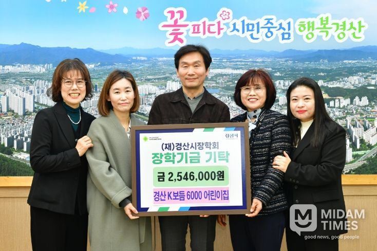 미담타임스 김준완 기자 | (재)경산시장학회(이사장 조현일)는 18일 경산시 K보듬 6000 4개소 어린이집에서 지역인재 육성을 위한 장학금 2,546,000원을 기탁했다고 밝혔다.