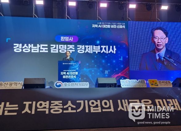 미담타임스 김교환 기자 | 경상남도는 중소벤처기업부 주최(중소벤처기업진흥공단 주관)로 ‘지역 주도형 AI 대전환 사업’ 정부 공모에 선정된 대구, 울산, 전남, 제주 4개 지자체 등과 함께 19일 창원컨벤션센터에서 ‘지역 인공지능(AI) 대전환 비전 선포식’을 개최했다고 밝혔다.