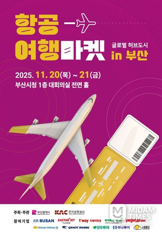 미담타임스 김교환 기자 | 부산시는 한국공항공사와 공동으로 오늘(20일)과 내일(21일) 이틀간 시청 1층 로비(전면 홀)에서 '2025 항공여행마켓 인(in) 글로벌 허브도시 부산'을 개최한다고 밝혔다.