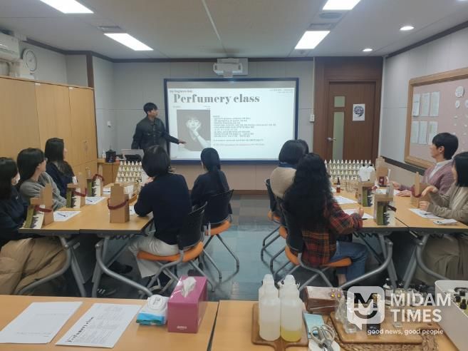 이번 프로그램은 상담 업무로 인한 감정노동과 피로 누적을 완화하기 위해 마련된 것으로 상담사들이 직접 자신만의 향을 조향하여 디퓨저를 만드는 체험을 통해 함께 웃고 즐기며 힐링의 시간을 보냈다.