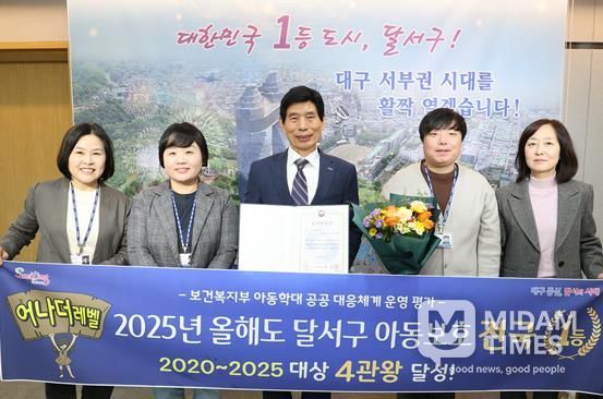 미담타임스 김교환 기자 | 대구 달서구는 보건복지부가 실시한 ‘2025년 아동학대 공공 대응체계 운영 평가’에서 올해도 전국 최고 등급인 대상을 수상했다.
