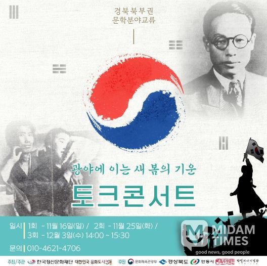 “저항의 불꽃과 자유의 언어”를 주 내용으로 진행되는 토크콘서트에는 국립경국대학교 사학과 강윤정 교수, 국민문화연구소 김창덕 회장, 예문관 박성진 대표가 패널로 참여하며, 중간에는 다채로운 공연도 선보일 예정이다.