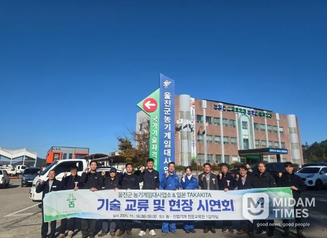 미담타임스 김준완 기자 | 울진군 농기계임대사업소는 지난 11월 18일 일본 농기계 제조사 타카키타(TAKAKITA) 엔지니어와 국내 협력 업체 관계자 등 총 7명이 방문한 가운데 기술교류 및 장비 시연회를 열었다.