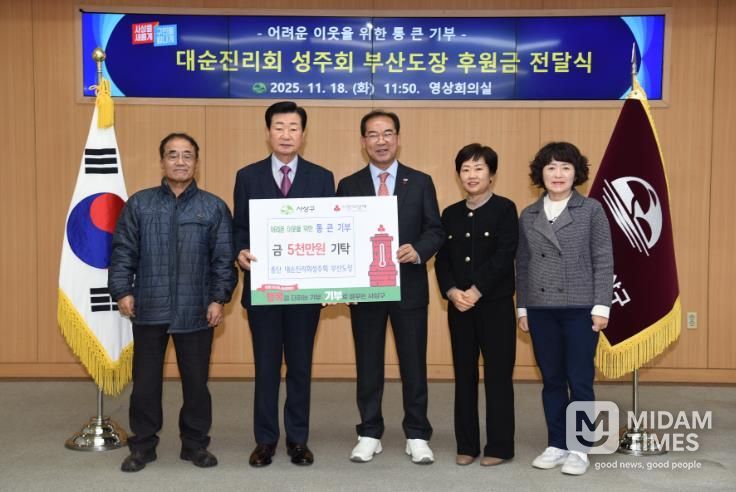 미담타임스 김교환 기자 | 부산 사상구는 지난 18일, 종단 대순진리회성주회 부산도장이 사상구 취약계층 지원을 위해 성금 5천만 원을 기탁했다고 밝혔다.