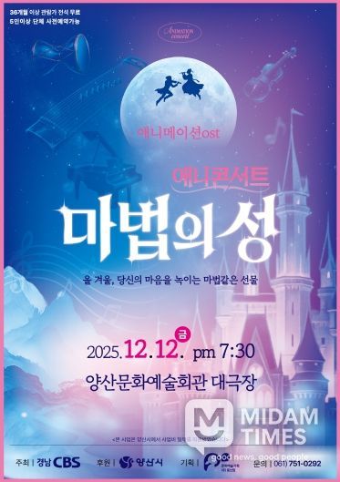 미담타임스 김교환 기자 | 양산시가 후원하고 (재)경남CBS가 주최하는 어린이를 위한 '애니메이션 OST 음악회 '마법의 성''이 12월 12일 오후 7시 30분 양산문화예술회관 대공연장에서 개최된다.