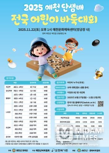 미담타임스 김준완 기자 | 예천군은 오는 22일, 예천군문화체육센터에서 ‘2025 예천 단샘배 전국 어린이 바둑대회’를 개최한다고 밝혔다.