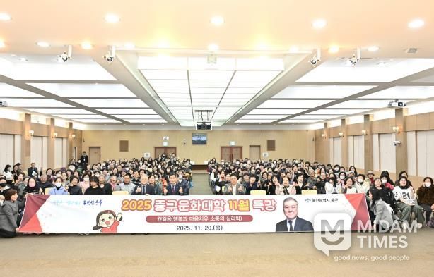 미담타임스 김준완 기자 | 울산 중구가 11월 20일 오후 1시 30분 중구청 대회의실에서 2025년 중구문화대학 11월 주민특강을 개최했다.