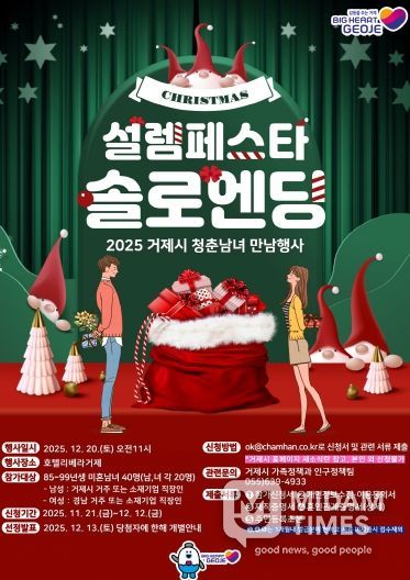 거제시는 “연말 감성을 담아 청년들이 부담 없이 교류할 수 있는 자리가 되도록 세밀하게 준비 중”이라며, “이번 행사가 새로운 인연을 찾는 기회가 되고, 지역사회에도 긍정적인 활기를 더하길 바란다”고 말했다.
