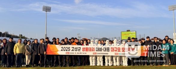 미담타임스 김교환 기자 | 고성군은 군민의 생명과 안전을 지키기 위해 2025년 11월 20일 고성군종합운동장에서 ‘2025년 생물테러 대응 대규모 모의훈련’을 성공적으로 실시했다고 밝혔다.