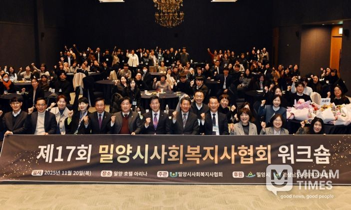 미담타임스 김교환 기자 | 경남 밀양시는 호텔아리나 경산홀에서 지역 내 민·관 사회복지사 130여 명이 참석한 가운데 ‘제17회 밀양시사회복지사협의회 워크숍’을 개최했다고 21일 밝혔다.