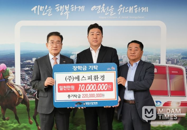 미담타임스 김준완 기자 | 영천시는 21일 ㈜에스피환경에서 장학금 1,000만원을 영천시장학회에 기탁했다고 밝혔다.