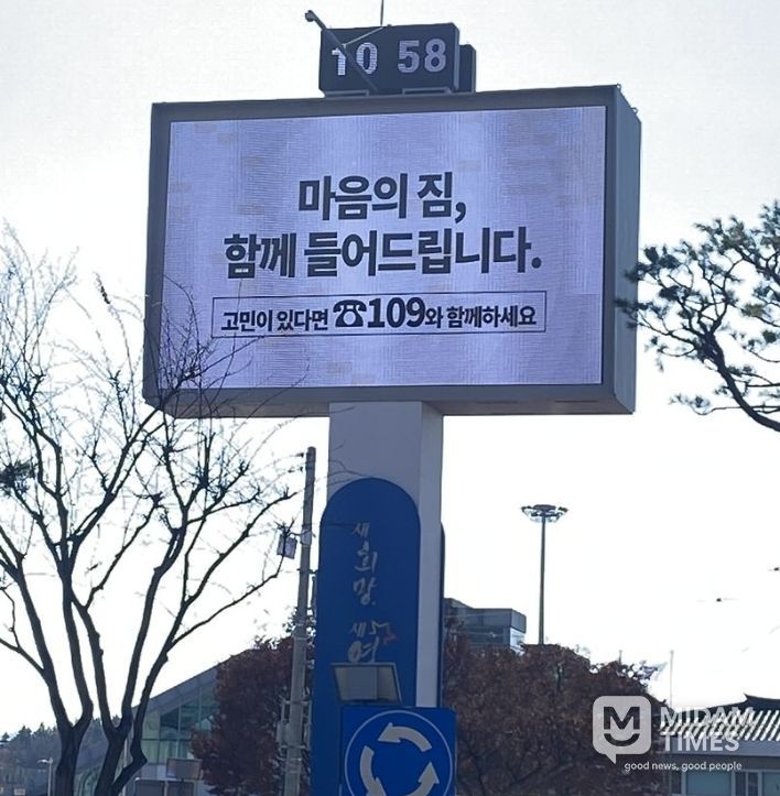 전광판에는 ▲마음의 봄은 반드시 찾아옵니다 ▲작은 희망이 큰 내일을 만듭니다 ▲당신의 이야기에 귀 기울입니다(☎109) 등 짧지만 따뜻한 의미를 담은 문구들이 송출되고 있다.