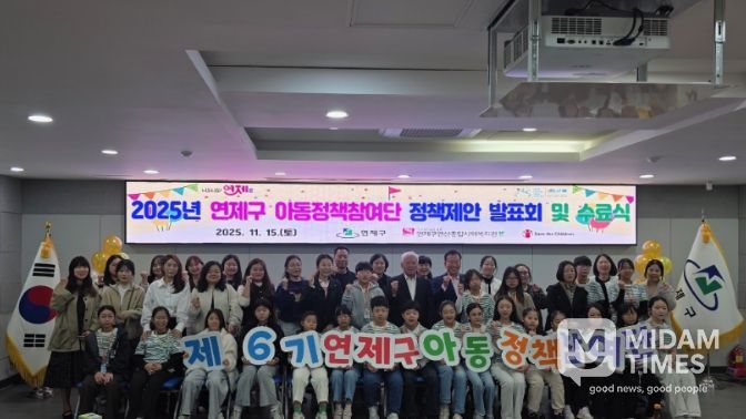 미담타임스 김교환 기자 | 부산시 연제구는 11월 15일 한 해 동안 추진된 아동정책참여단의 활동을 마무리하는 ‘2025년 연제구 아동정책참여단 정책제안 발표회 및 수료식’을 개최했다.
