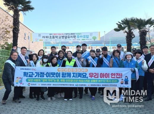 미담타임스 김교환 기자 | 창원특례시는 21일 성산구 사파초등학교 통학로 일대에서 등교하는 학생들을 대상으로 어린이 약취·유인 예방 캠페인을 실시했다.