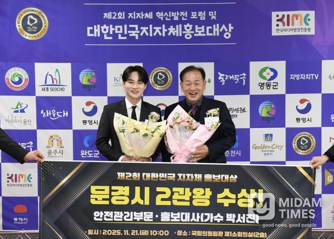 미담타임스 김준완 기자 | 문경시는 11월 21일, 국회의사당 국회의원회관 제1소회의실에서 열린 ‘제2회 대한민국 지자체 홍보대상’ 시상식에서 안전관리부문 대상과 홍보대사대상 특별상을 동시에 수상해 2관왕의 영예를 안았다.