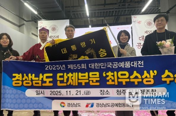 미담타임스 김교환 기자 | 경상남도는 21일 청주시 문화제조창에서 열린 ‘제55회 대한민국 공예품대전 시상식’에서 3년 연속 단체 최우수상(국가유산청장상)을 수상하고 대통령기를 수여받았다고 밝혔다.