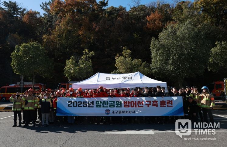미담타임스 김교환 기자 | 대구중부소방서는 11월 21일 남구 앞산공원 전역에서 대규모 산불 확산을 차단하기 위한 유관기관 합동 방어선 구축 훈련을 실시했다.