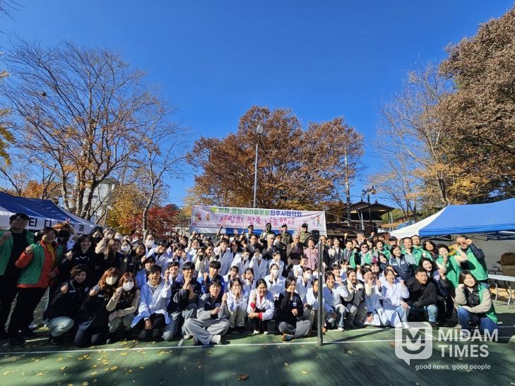미담타임스 김교환 기자 | 진주시 상봉동 행정복지센터는 22일 직장·공장새마을운동진주시협의회(회장 전형수)가 진주시 상봉동 소재 서봉지공원에서 지역 어르신 800여 명을 대상으로 『사랑의 팥죽 나눔 및 건강지원 봉사』 행사를 진행했다고 밝혔다.