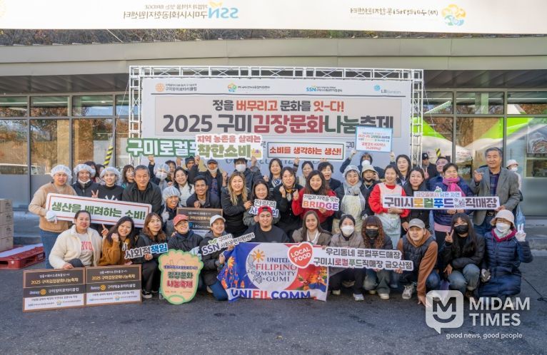 미담타임스 김준완 기자 | (재)구미먹거리통합지원센터는 지난 21일 구미시로컬푸드직매장 금오산점 앞 주차장에서 구미사회공헌지원센터와 함께 개최한'2025 구미김장문화나눔축제'를 성황리에 마무리했다고 밝혔다.