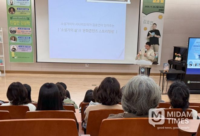 미담타임스 김준완 기자 | 청도교육지원청 청도도서관은 11월 23일 오후 2시, 2025 인문학 콘서트 '친절한 인문학'의 여섯 번째 시간으로 소설가이자 시나리오 작가 김호연을 초청해 ‘스토리텔러의 삶과 일’이라는 주제로 강연을 개최했다.