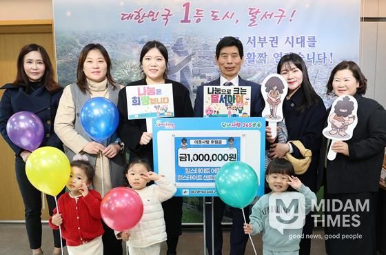 미담타임스 김교환 기자 | 대구 달서구는 힐스테이트 어린이집과 힐스테이트 센트럴 어린이집으로부터 어려운 이웃을 위해 사용해 달라며 후원금 100만 원을 기탁받았다고 24일 밝혔다.