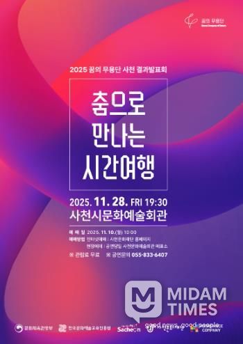 미담타임스 김교환 기자 | 사천문화재단은 오는 11월 28일 오후 7시 30분, 사천시문화예술회관 대공연장에서 ‘2025 꿈의 무용단 사천’ 결과발표회 '춤으로 만나는 시간여행'을 개최한다.