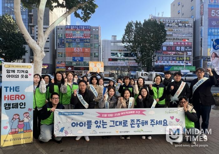 미담타임스 김교환 기자 | 대구 수성구는 ‘아동학대예방의날(11. 19.)’과 ‘아동학대예방 주간(11. 19. ~ 11. 25.)’을 맞아 아동학대 예방과 인식 개선을 위한 민·관·경 합동 캠페인을 실시했다.