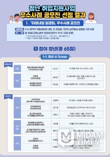 ▴미래내일 일경험 최우수상(멘토 수기)을 받은 정원준 씨는 일경험으로 사회에 첫발을 내디뎠던 자신의 경험을 바탕으로 인턴들에게 실제 회사 데이터를 분석·개선하는 과제를 부여해 성공 경험을 심어줬고, ▴청년도전지원사업 최우수상(우수 매니저)을 받은 송하늬 씨는 청년의 재능을 발견해 네일아트 직업훈련으로 연계해 취업까지 성공할 수 있도록 돕기도 했다.