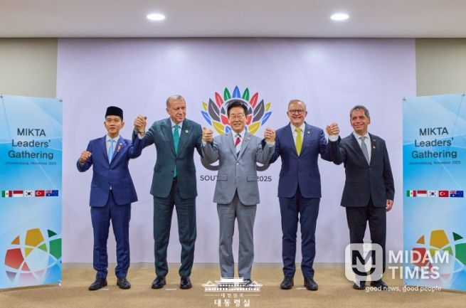 미담타임스 김교환 기자 | 주요 20개국(G20) 정상회의 참석을 위해 남아프리카공화국을 방문한 이재명 대통령은22일(현지시간) 오후 우리나라, 멕시코, 인도네시아, 튀르키예, 호주 5개국으로 구성된 믹타(MIKTA) 회원국 정상들과 회동했다.