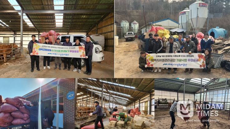 미담타임스 김준완 기자 | 태백시시설관리공단은 폐낙엽 자원순환 사업의 일환으로 지난 11월 19일과 20일 관내 축산농가 2곳에 폐낙엽 200포를 1차로 기부했다고 밝혔다.
