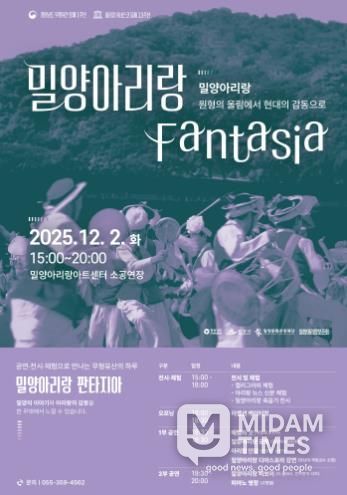 미담타임스 김교환 기자 | 경남 밀양시는 오는 12월 2일 오후 3시부터 8시까지 밀양아리랑아트센터 소공연장과 전수관에서 ‘2025 밀양아리랑 판타지아’를 개최한다.