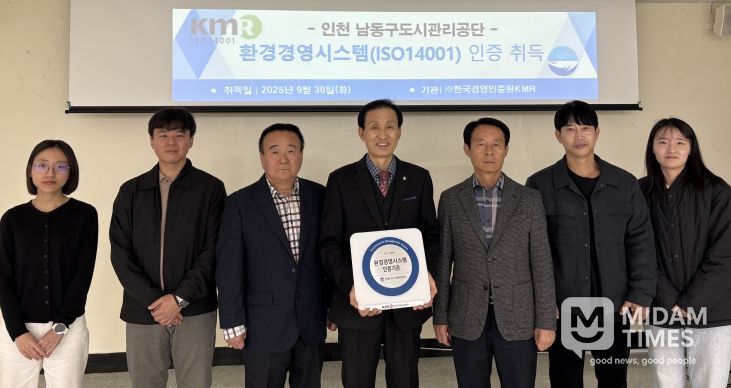 미담타임스 김준완 기자 | 인천시 남동구 도시관리공단은 한국경영인증원으로부터 국제표준 환경경영시스템 ISO14001:2015 인증을 최종 취득했다고 25일 밝혔다.