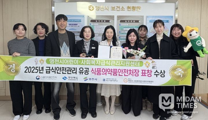 미담타임스 김준완 기자 | 영천시어린이·사회복지급식관리지원센터는 지난 17일 ‘어린이·사회복지 급식안전관리 유공’ 식품의약품안전처 우수상 표창을 수상했다.