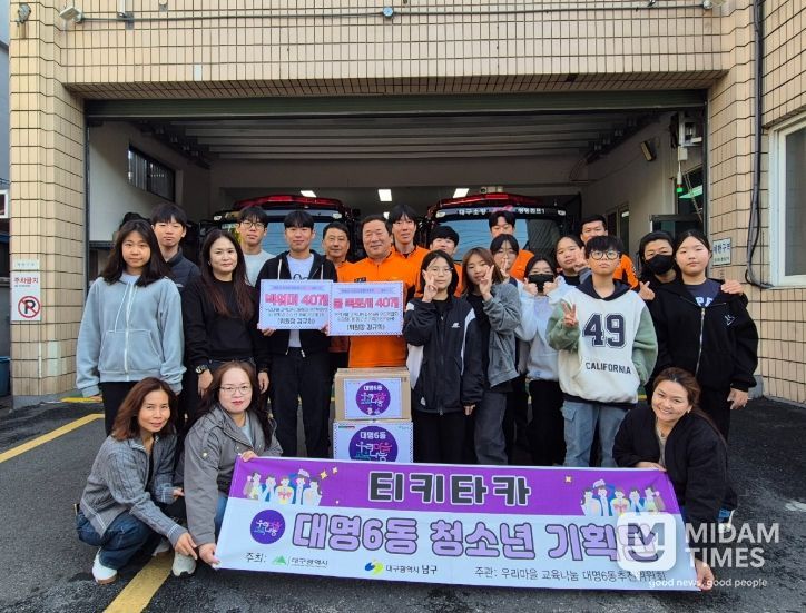 미담타임스 김교환 기자 | 대구 남구 대명6동은 마을 청소년들이 지난 여름방학 동안 '1일 사장님' 프로그램을 통해 얻은 수익금으로 방한용 넥워머 40개와 여름용 쿨 넥워머 40개를 소방서에 기부하며, 소방의 날을 맞아 소방관들에게 감사와 응원의 마음을 전달했다고 밝혔다.