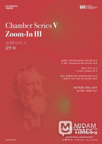 미담타임스 김교환 기자 | 부산시립교향악단(수석객원지휘자 홍석원)의 실내악 시리즈 '줌인'의 세 번째 무대가 오는 12월 2일 부산문화회관 챔버홀 무대에 오른다.