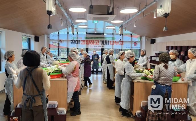 미담타임스 정주환 기자 | 경기도 먹거리광장은 지난 25~26일 이틀간 사계주방 연말 특별프로그램 ‘같이 김장하고 가치 나누고’를 통해 도민들과 함께 김장을 하고 완성한 김치를 인근 사회복지기관에 전달하며 나눔을 실천했다.