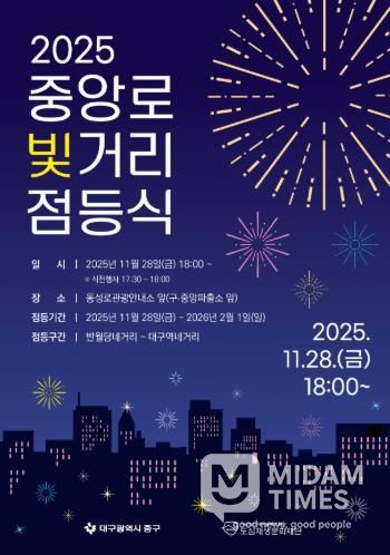 미담타임스 김교환 기자 | 대구 중구는 오는 28일 오후 6시, 동성로관광안내소 앞에서 ‘2025 중앙로 빛거리 점등식’을 개최한다고 밝혔다.