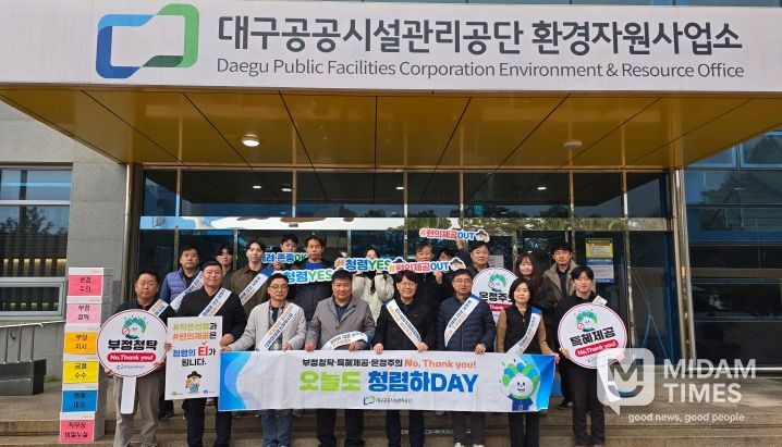 미담타임스 김교환 기자 | 대구공공시설관리공단 환경자원사업소는 11월 25일, 청렴문화 확산과 지역사회 청렴도 향상을 위해 ‘청렴하DAY’ 협동캠페인을 진행했다.