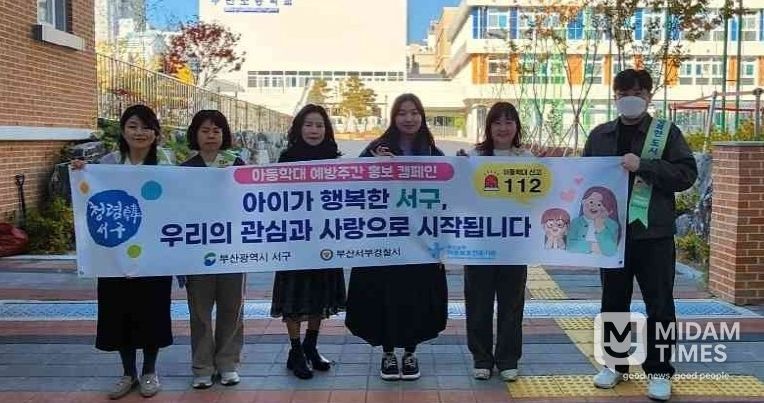 미담타임스 김교환 기자 | 부산 서구는 아동학대 예방주간을 맞아 지난 24일 부민초등학교 앞에서 아동학대 예방 홍보 캠페인을 실시했다. 이번 캠페인은 부산남부아동보호전문기관과 함께 진행됐으며, 지역 주민과 아동을 대상으로 홍보물품을 배부하고 아동학대 인식 개선과 긍정적 양육의 중요성을 홍보했다.
