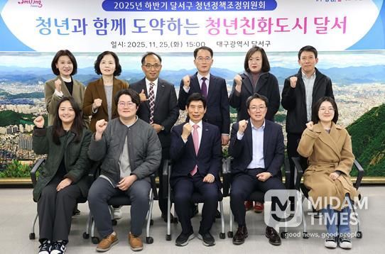 미담타임스 김교환 기자 | 대구 달서구는 지난 25일 구청에서 ‘2025년 하반기 달서구 청년정책조정위원회’ 정기회의를 개최하고 2025년 청년정책 추진성과와 2026년 신규 청년지원사업 방향에 대해 자문을 받았다.